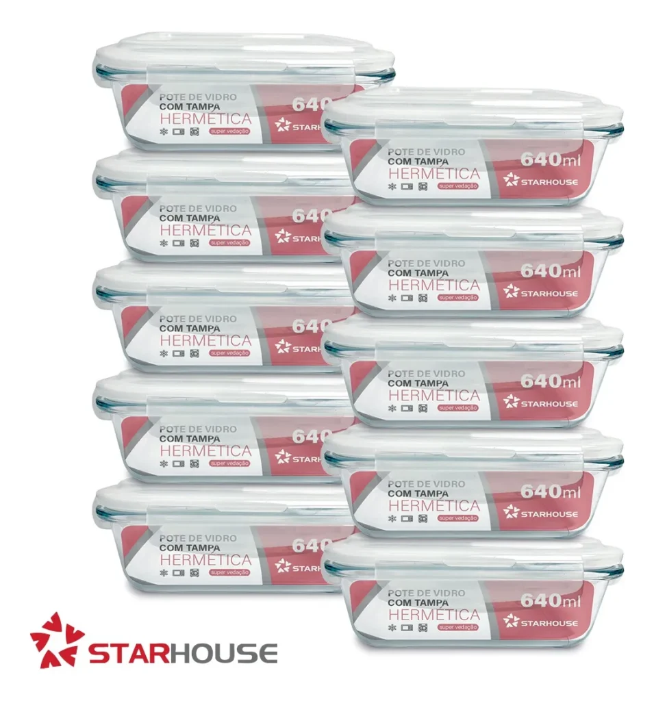 Kit 10 Potes Herméticos Vidro 640ml Starhouse Marmita Forno Micro-ondas
